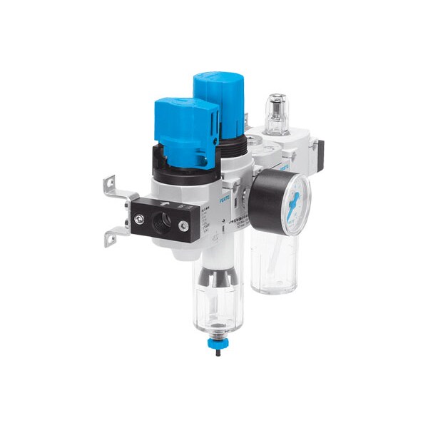 Service Unit Frc-1/4-D-Mini-Kc Consisting Of Manual On/Off Valve, Filter Regulator, Distributor Module With Pressure Switch But Without Socket, And Lubricator With Mounting Brackets. With Manual Condensate Drain And Metal Bowl Guard. Size=Mini, Series=D, Actuator Lock=Rotary Knob With Lock, Assembly Position=Vertical +/- 5°, Grade Of Filtration=40 μm
