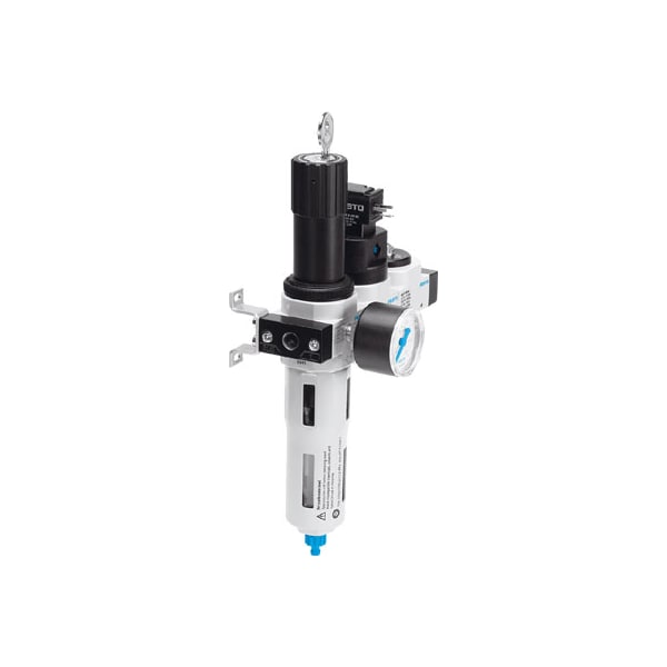 Service Unit Lfrs-1/2-D-Maxi-Kd With Lockable Regulator Head And Pressure Gauge, For Nominal Pressure 12 Bar, For Unlubricated Compressed Air. Size=Maxi, Series=D, Actuator Lock=Rotary Knob With Integrated Lock, Assembly Position=Vertical +/- 5°, Grade Of Filtration=40 μm