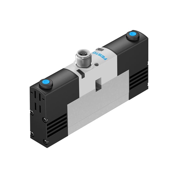 Solenoid Valve Vsva-B-P53E-H-A2-1R2L With Central Plug, Round Design M8X1. Valve Function=5/3 Exhausted, Type Of Actuation=Electrical, Width=18 Mm, Standard Nominal Flow Rate=450 L/Min, Operating Pressure=3 - 8 Bar