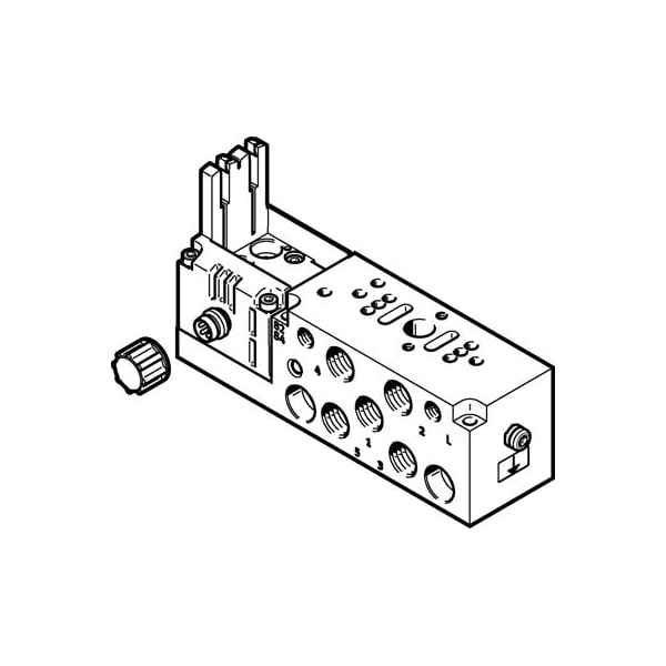 Sub-Base Vmpa2-Ic-Ap-1 For Individual Valve Mpa2 With Internal Pilot Air Supply. Width=30,5 Mm, Length=107,3 Mm, Grid Dimension=21 Mm, Operating Pressure=3 - 8 Bar, Pilot Pressure=3 - 8 Bar