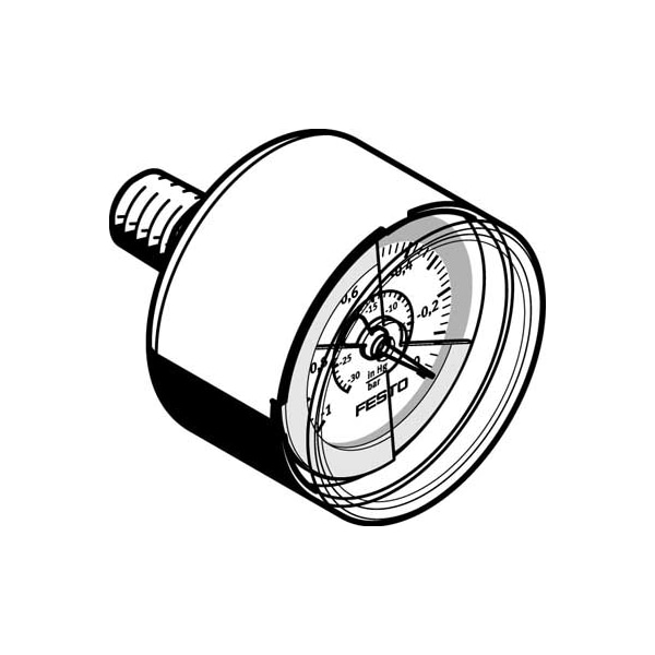 Vacuum Gauge Vam-40-V1/0-R1/8-E-Rg With Display Unit In Bar. Nominal Size Of Pressure Gauge=40, Position Of Connection=Rear Side Central, Based On The Standard=Din En 837-1, Type Of Seal On Screw-In Stud=Coating, Assembly Position=Any