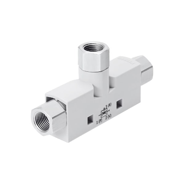 Vacuum Generator Vn-05-M-T2-Pi2-Vi2-Ri2 In-Line, High Vacuum, Width 10 Mm, With Female Thread. Nominal Size, Laval Nozzle=0,45 Mm, Grid Dimension=10 Mm, Assembly Position=Any, Ejector Characteristic=(* High Vacuum, * Inline), Design Structure=T-Shaped