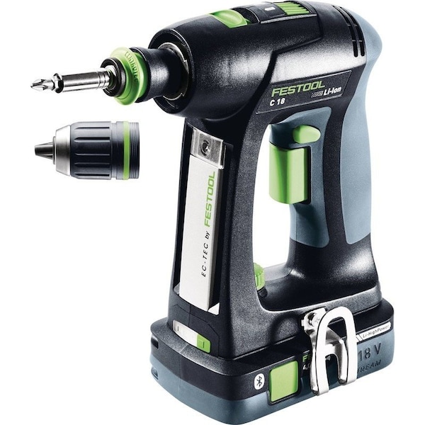 Enjoy full flexibility when drilling and screwdriving: the completely electronic torque adjustment, CENTROTEC quick-change system, as well as angle attachment, eccentric attachment and depth stop can handle any drilling or screwdriving task. The combination of the Li-HighPower battery pack and maintenance-free brushless EC-TEC motor means that the C 18 cordless drill is light, long-lasting and durable. The cordless screwdriver and battery pack are completely covered with the Festool SERVICE, giving you peace of mind for your day-to-day work. Available in unique C-design or - depending on personal preference - in T-design as the T 18+3.