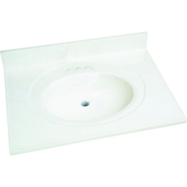 Durable and seamless, the one-piece cultured marble vanity tops are the ideal addition to any vanity. Featuring an integrated oval bowl and 4 in backsplash, the cultured marble tops are easy to install and ready to add a stylish touch to your bathroom.