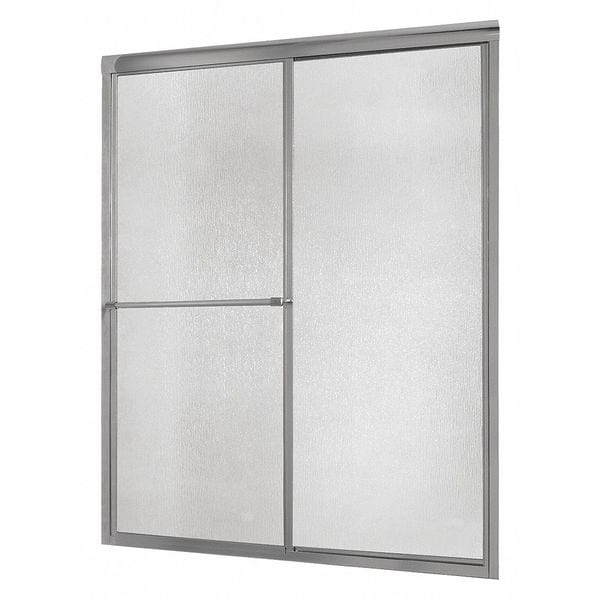 Shower Door, ADA Compliance No, Door Application Shower, Door Frame Finish Silver, Door Frame Material Aluminum, Door Type Double Sliding, For Use With 60 in W Shower, Framed, Glass Thickness 3/16 in, Rain Tempered Glass, Number of Panels 2, Overall Depth 2 1/2 in, Overall Height 70 in, Foremost, Width Range (In.) 56 in to 60 in