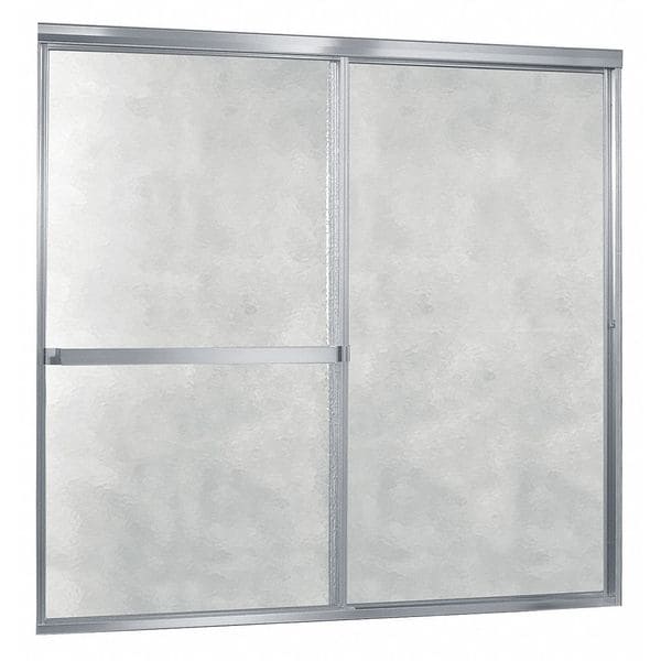 Tub Door, ADA Compliance No, Door Application Tub, Door Frame Finish Silver, Door Frame Material Aluminum, Door Type Double Sliding, For Use With 60 in W Tub, Framed, Glass Thickness 3/16 in, Obscured Tempered Glass, Number of Panels 2, Overall Depth 2 in, Overall Height 55 in, Foremost, Width Range (In.) 56 in to 60 in