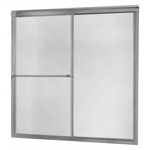 Tub Door, ADA Compliance No, Door Application Tub, Door Frame Finish Silver, Door Frame Material Aluminum, Door Type Double Sliding, For Use With 60 in W Tub, Framed, Glass Thickness 3/16 in, Rain Tempered Glass, Number of Panels 2, Overall Depth 2 1/2 in, Overall Height 58 in, Foremost, Width Range (In.) 56 in to 60 in