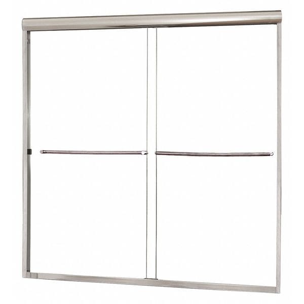 Tub Door, ADA Compliance No, Door Application Tub, Door Frame Finish Silver, Door Frame Material Aluminum, Door Type Double Sliding, For Use With 60 in W Tub, Frameless, Glass Thickness 1/4 in, Clear Tempered Glass, Number of Panels 2, Overall Depth 2 1/2 in, Overall Height 60 in, Foremost, Width Range (In.) 56 in to 60 in