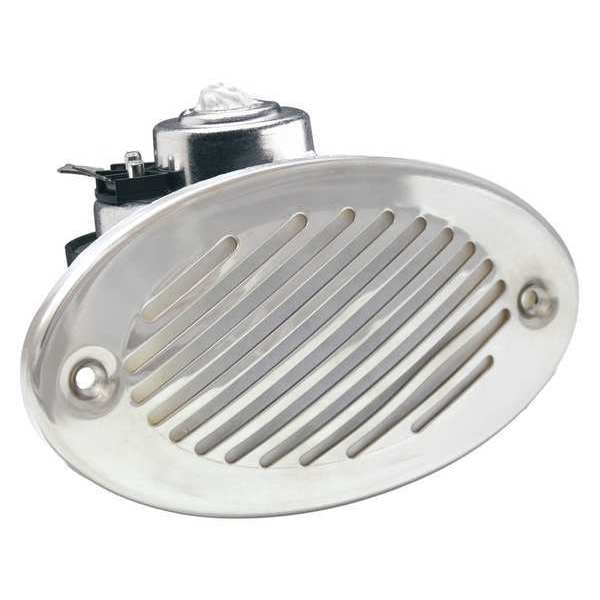 Low Tone Horn, Electric, Length (In.) 5, Width (In.) 4, Height (In.) 3-1/2, Dia. (In.) 5, Material Plastic, Finish Unfinished, Universal Mount Mounting, Decibels (dB) 105 @ 1 meter, 6 Amps, Voltage 12VDC, For Use With Boat, Marine Applications, For Use On Fiberglass, Metal, Plastic, Rubber, Includes White Grill Covers