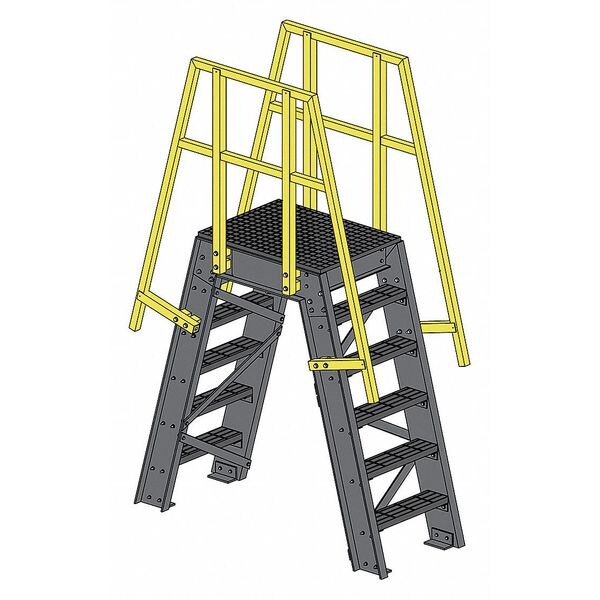 Vertical Clearance 60 in, Span 36 in, Platform Height 69 in, Platform Depth 36 in, Number of Steps 6, Bottom Width 28 3/8 in, Load Capacity 300 lb, Overall Span 59 in, Overall Height 111 in, Handrail Height 42 in, Climbing Angle 75 Degrees , Step Tread Grid, Step Width 24 in, Step Depth 6 in, Material Fiberglass, Finish Satin, Color Gray/Yellow, Standards OSHA