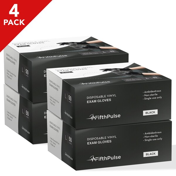 4 pack, Disposable Gloves, Vinyl, Powder-Free, L, 50 PK, Black