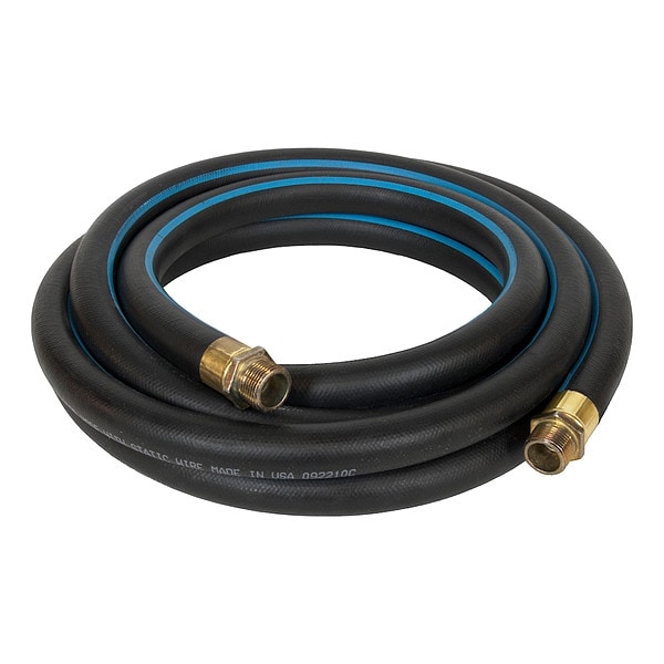 Discharge Hose, Hose Length 20 ft, Hose Inside Dia. 3/4 in, Hose Outside Dia. 1 1/8 in, Hose Tube Material Nitrile, Hose Cover Material Neoprene, Hose Fitting A Material Brass, Hose Fitting B Material Brass, Hose Fitting A Type MNPT, Hose Fitting B Type MNPT, Hose Fitting A Size 3/4 in, Hose Fitting B Size 3/4 in, Max. Working Pressure @ 70 F 50 psi, Temp. Range -40 Degrees to 130 Degrees F, Agency Compliance UL Listed, For Use With Fuel Transfer Pumps, Includes Static Wire