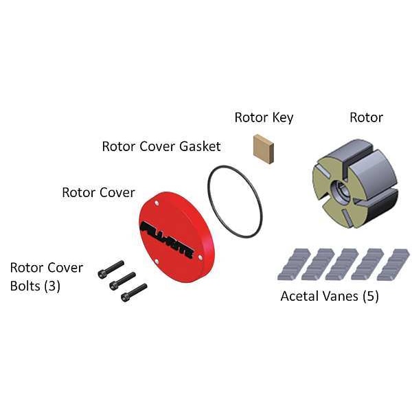 (3) Rotor Cover Bolts, Acetal Vanes, Rotor, Rotor Cover, Rotor Cover Gasket, Rotor Key