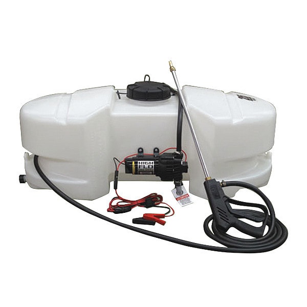 12 Volt Pump, 15 Feet of 3/8 Inch Hose, Fuse Protected 8 Foot Lead Wire, Adjustable Deluxe Pistol Grip Spray Wand, Durable Poly Tank