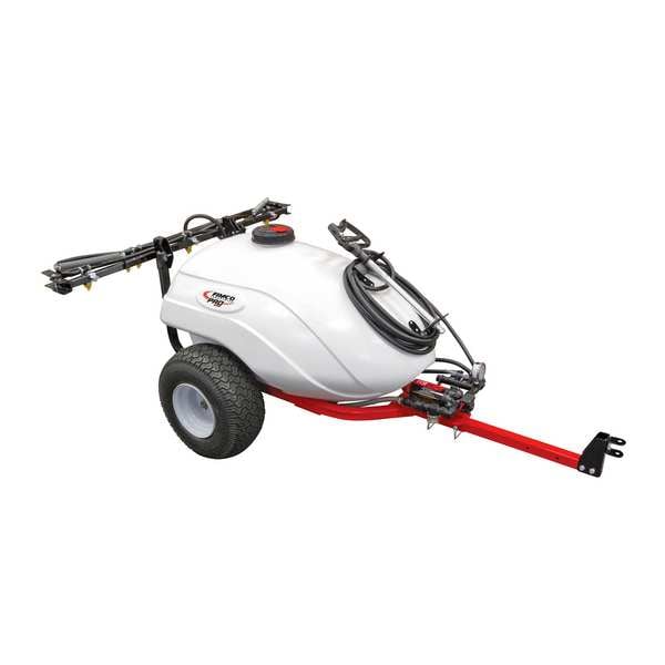 The FIMCO 50 Gallon Pro Series 7 Nozzle Trailer Sprayer provides superior professional grade performance and is ideal for projects where harsh chemicals are necessary. The UV resistant, molded polymer tank is completely drainable and has a 5 inch FIMCO Exclusive Multi Lid with attached measuring cup for easy access and allows easy measurement of liquid product. Trailer Sprayer is equipped with turf tires for easy towing in most terrain. This model lawn and garden sprayer features the best in class High Flo 4.0 GPM Pro Series 12 Volt Pump with inline fuse protection and clear bowl strainer. The ergonomically designed 22” High Pressure Spray Wand features an adjustable spray pattern no drip shut-off tip that can spray up to 38 feet of horizontal and 27 feet of vertical spray with 25 feet of 3/8 inch hose. Our FIMCO exclusive manifold places pressure control conveniently at your fingertips to fine tune your spray pattern. The folding 7 Nozzle Boom distributes 12 feet of total spray coverage. Each premium air inducted nozzle provides excellent drift control while still providing precise liquid application. The 110 degree spray angle from TeeJet’s AIXR boom tip produces a large air filled drop for uniform coverage in broadcast spraying. This versatile Pro Series sprayer is a premium upgrade designed for commercial use in business operations requiring small scale liquid applications. This pull-behind sprayer allows easy, accurate and consistent liquid application. The best trailer sprayer for controlling weeds and insects on ball fields, parks, acreages, food plots, pastures and small farms.