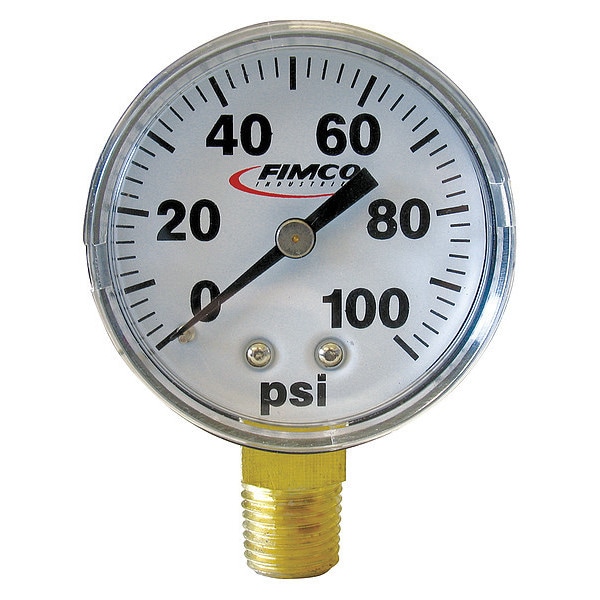 Dry Bottom Mnt Pressure Gauge,100PSI,2 In.