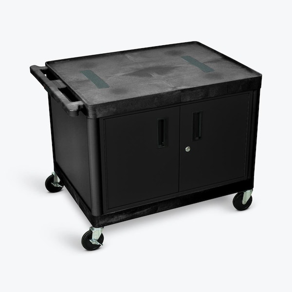27 in. Two Shelves AV Cart with Cabinet, Black