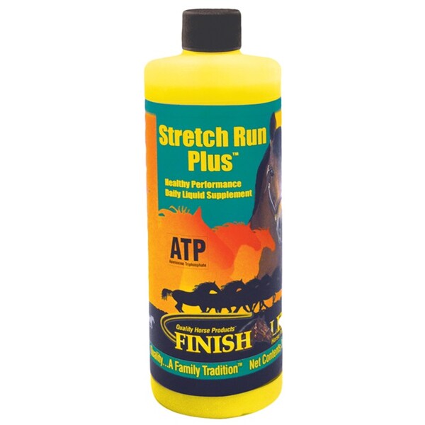 Finish Line Stretch Run Plus is a daily liquid supplement recommended to support healthy metabolic muscle functions in the horse during training/competition season.Active IngredientsPer 2 fluid ounces - (63 grams)Q-Bose BlendRed GinsengTart CherryDimethylglycineQ-Bose is a proprietary blend of Vitamin 12 (cyanocobalamin), Ribose, Coenzyme Q-10, and Gamma Oryzanol.