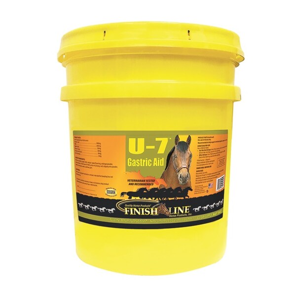 U-7 is an easy-to-use, very palatable Vitamin/Herbal blend that helps promote a healthy equine digestive system including the foregut and hindgut. U-7 Gastric Aid is a revolutionary new formula promoting healthy appetite, performance, and attitude. Horses love the taste of the natural active ingredients. Not an anti-acid or an acid production blocker. U-7 is a cost effective alternative to help gastric health in your horse. Some of the soothing ingredients include: Cinnamon, Cabbage, Aloe, Carrot, Slippery Elm, Ascorbic Acid, MSM, and Licorice. Safe for foals and is also recommended for all horses that are confined to stalls or engaged in moderate to heavy work schedules. Dosage 5 gallons, 320 day supply, maintenance, at 2 fluid oz. per day.