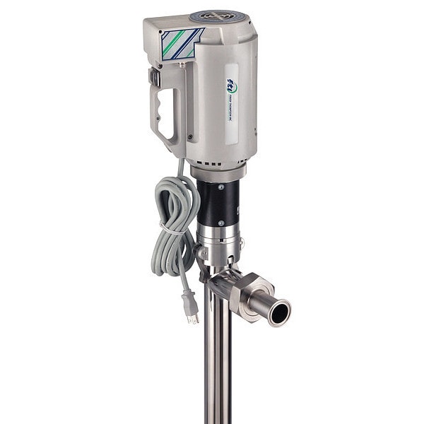 Electric Drum Pump, Hose Inside Dia. 1 1/2 in, Max. Head Pressure 120 psi, Max. Outlet Pressure 120 psi, For Use With Colorants., Food Ingredients, Pharmaceuticals, Rated Voltage 115 V AC, Plug Type NEMA 5-15, Pump Connection ID 2 in, Suction Tube OD 2 in, Hose Length Not Applicable, Suction Tube Length 40 in, Cord Length 12 ft, Includes Bung Adapter No, Runs Dry No, Nozzle Operation Not Applicable, Thermal Protection No, Frequency (Hz) 60 Hz, Power Source Corded Electric, Variable Speed Yes