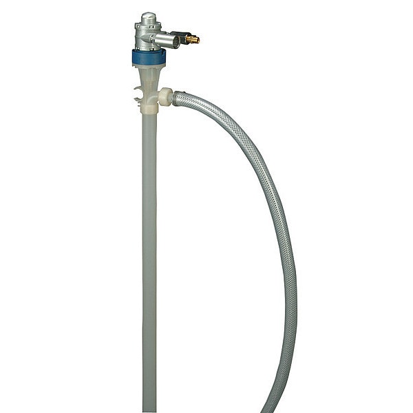 Air Drum Pump, Max. Air Pressure 40 psi, Spout Connection Size 3/4 in, Suction Tube Material Polypropylene/PVDF, Self-Priming Yes, Overall Length 46 13/16 in, Explosion Proof Yes, Discharge Connection Type Hose Barb, Spout Length 1 in, Food Grade No, Thermal Protection No, Air Outlet Size 1/4 in, Air Consumption 27 cfm, Hose Length 60 in, Motor HP 1/2 hp, Variable Speed Yes, Includes Discharge Hose Yes, Noise Level 78 dB, Max. Viscosity 300 cps, Duty Cycle Continuous, Includes Suction Tube Yes