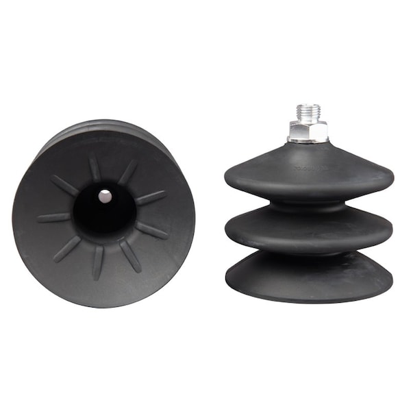 Universal bellows vacuum cups with 2.5 folds for handling sensitive or uneven products over large lift movements.