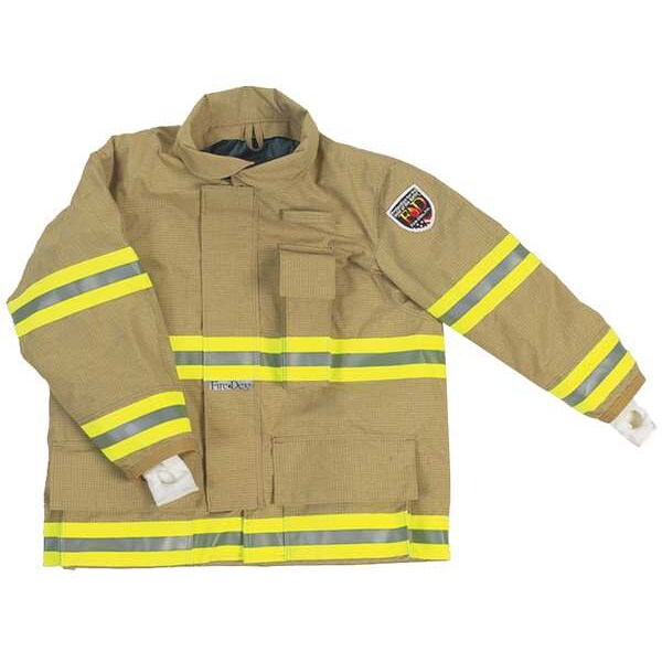 Turnout Coat, Size 2XL, Gold, Trim Color Lime/Yellow, Trim Material 3M Scotchlite(TM), Trim Width 3 in, Fits Chest Size 52 in to 54 in, Length 32 in, Material PBI/Matrix(TM), Lining Material Quilted Para Aramid/Stedair(R) 3000, Zipper/Hook-and-Loop Closure Type, Pockets (2) 9 x 9 x 2 in Combination Cargo/Handwarmer Pockets, (1) 9 x 3 x 2 in Radio Pocket, Standards NFPA 1971, Current Edition