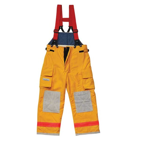 Turnout Pants, Size S, Fits Waist Size 30 to 32 In., Inseam 29 In., Yellow, Trim Color Red/Orange, Trim Width 2 In., Trim Material Scotchlite(TM) Reflective, Material Nomex(R) IIIA, Lining Material Nomex(R) Calendared Facecloth Quilted to Nomex(R) Batt Sewn to Stedair(R) 3000 on E-89(TM), Closure Type Hook-and-Loop, Pockets (2) 10 x 10 x 2 In. Pockets, Includes H-Style Suspenders, Standards NFPA