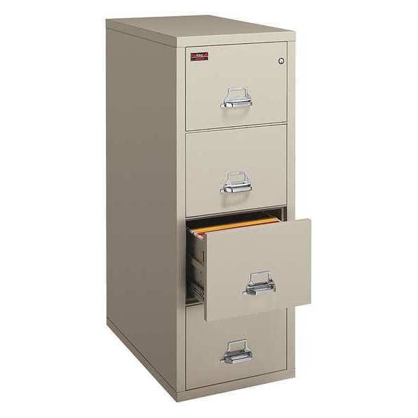 Fire-Resistant Vertical File Cabinet, Color Parchment, Finish Powder Coated, Fire Resistance Rating ETL 1/2-Hour Fire-Rated For Digital Media; UL Class 350 Rated for One Hour, Form Factor Legal, Locking Integrated, Material Gypsum, Steel, Number of Drawers 4, Overall Depth 32 1/8 in, Overall Height 57 in, Overall Width 21 3/8 in, Product Type Fire-Resistant Vertical File Cabinet, Standards UL 30-ft Impact-Rated, UL High-Security Key Lock, Inside Drawer Width 15 1/4 in, Inside Drawer Depth 26 in