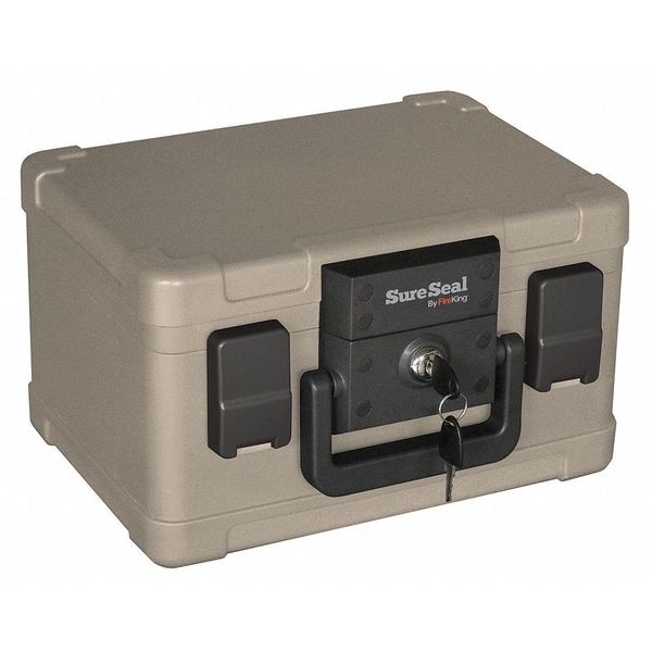 Fireproof File Chest, Color Taupe, Fire Resistance Rating UL Class 350 Rated for Half Hour, Form Factor #10 Envelope, Locking Yes, Material Molded Plastic, Overall Height 7 1/4 in, Overall Width 9 3/4 in, Product Type Fire-Resistant Chest, Standards UL Class 350 30 min Fire - 1550 Degrees F, Inside Height 4 1/2 in, Inside Length 9 5/8 in, Inside Width 6 in, Overall Length 12 1/4 in, Number of Keys 2