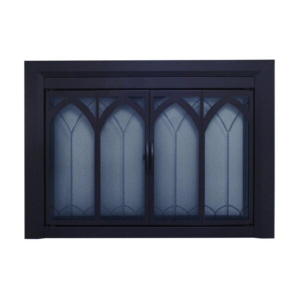 This decorative stylish Fireplace Glass Doors fireplace glass door design enhances one's traditional masonry fireplace hearth while at the same time help reduce heat loss and cool air loss up the chimney by as much as 90% while the fireplace is not in use for a year-round energy savings. Easy to install, fully assembled. These fireplace glass doors are designed as a surface mount as an overlap design - For masonry fireplaces only - not for prefabricated.