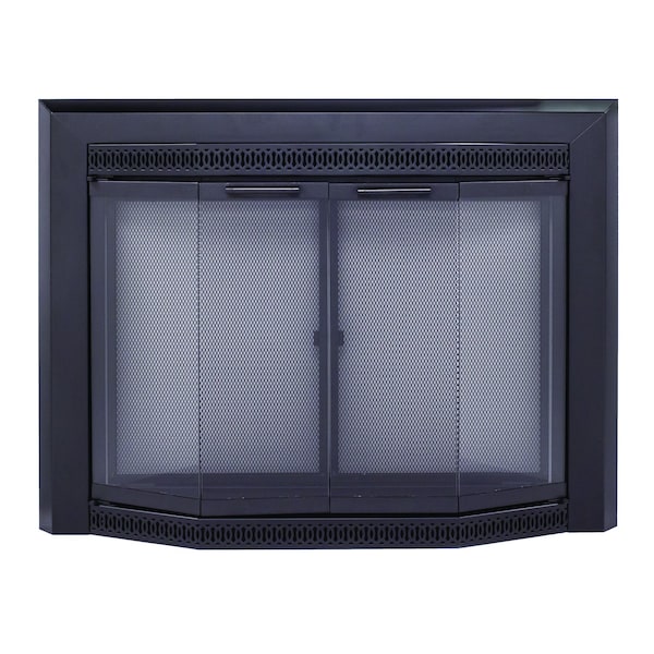 This traditional decorative stylish Fireplace Glass Doors three-sided bay window fireplace glass door design enhances one's traditional masonry fireplace hearth while at the same time help reduce heat loss and cool air loss up the chimney by as much as 90% while the fireplace is not in use for a year-round energy savings. Easy to install, fully assembled. These fireplace glass doors are designed as a surface mount as an overlap design - For masonry fireplaces only - not for prefabricated.