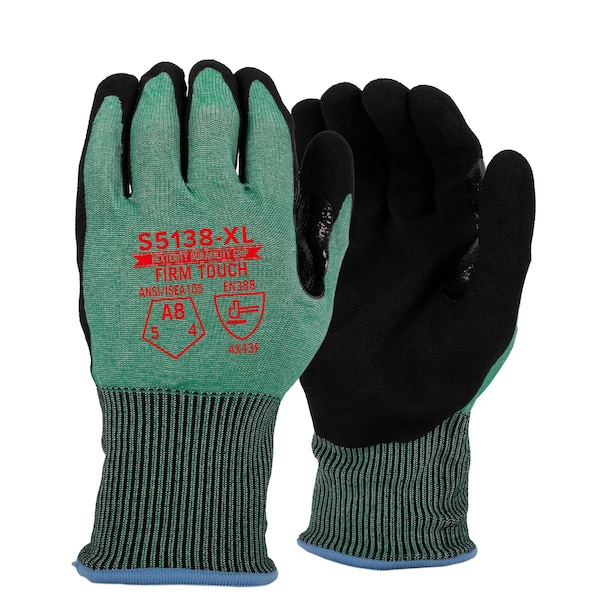 ANSI CUT A8, STANDARD 15g HDPE BLEND, Sandy Foam nitrile , true Touchscreen, Extended thumb saddle