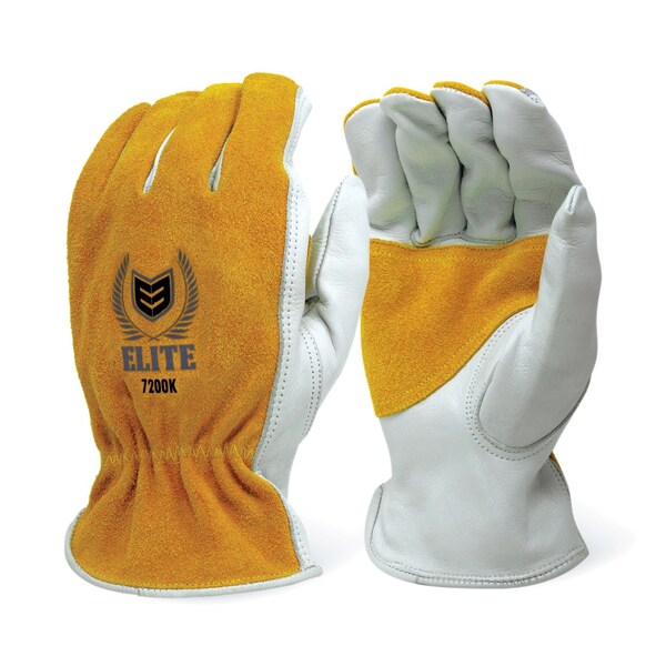 White Cow Grain Leather, Palm Patch, Golden Yllw Cowhide Split Leather Back, Kevlar Thread M, 12PK