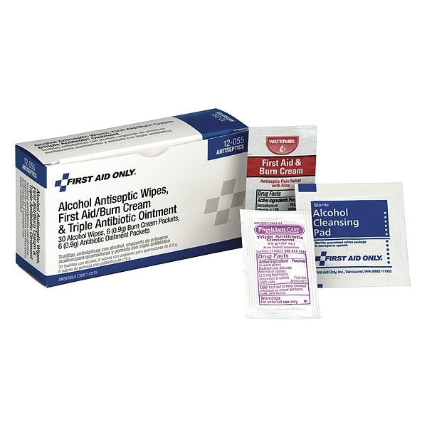 Partial Refill or Kit, Product Type Partial Refill or Kit, Number of People Served 1, Number of Components 42, Number of Pockets 0, Adhesive Bandages Included No Adhesive Bandages, Documentation Included Not Applicable, Wound Dressings Included No Wound Dressings, Miscellaneous Kit Contents Included Not Applicable, Topical Medicinals Included (30) BZK Wipes, (6) Burn Creams, (6) Triple Antibiotic Ointments, Oral and Inhalant Medicinals Included No Oral/Inhalant Medicinals, Housing Width 1 1/4 in