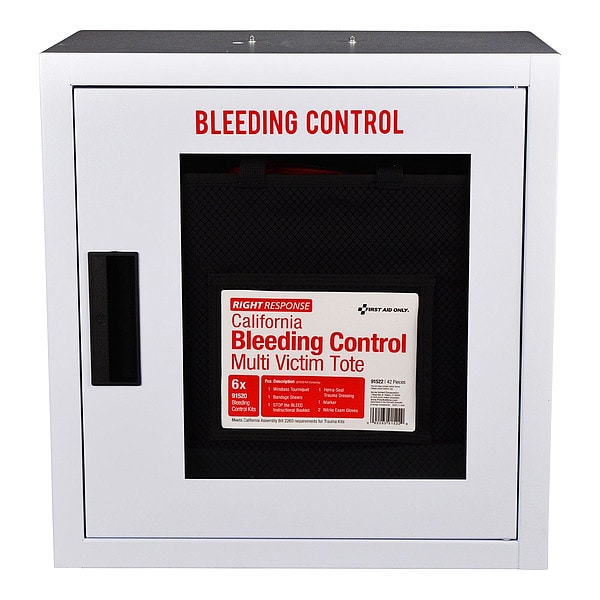 Bleed Control Kits, Product Type Bleeding Control Kit, Number of People Served 6, Number of Components 42, Adhesive Bandages Included No Adhesive Bandages, Documentation Included Stop the Bleed Guide, Wound Dressings Included (6) Trauma Dressings, (6) Windlass Tourniquets, Miscellaneous Kit Contents Included (6) Markers, Topical Medicinals Included No Topical Medicinals, Oral and Inhalant Medicinals Included No Oral/Inhalant Medicinals, Housing Width 19 in