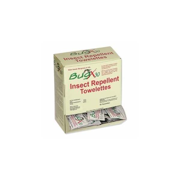 BugX30 DEET Wipe, 5mL, Packets, 50 per Box