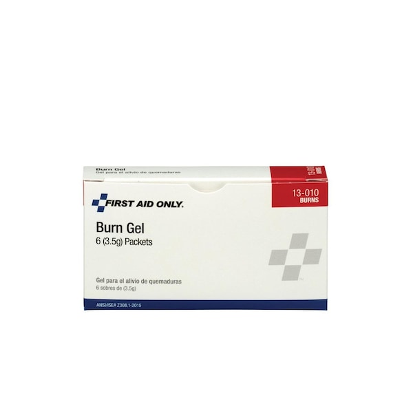 GEL FOIL PACKETS OF ANESTHETIC PAIN RELIEVING GEL TO HELP PROVIDE TEMPORARY RELIEF OF PAIN DUE TO MINOR BURNS, CUTS, SCRAPES AND ABRASIONS. PAIN RELIEVING BURN GEL PACKETS. SOLD AS BOX OF 6 PACKETS. PERFECT FOR STANDALONE FIRST AID OR AS A REFILL FOR A KIT.