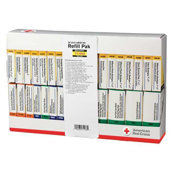 Complete Refill or Kit, Product Type Complete Refill or Kit, Application Industrial, Number of People Served 1, Number of Components 214, Number of Pockets 0, Adhesive Bandages Included (10) Fingertip Bandages, (80) Bandages, (8) Knuckle Bandages, Documentation Included First Aid Guide, Wound Dressings Included (2) Cold Packs, (2) Eye Pads, (2) Tapes, (2) Trauma Pads, (2) Triangular Bandages, (24) Gauze Pads, (4) Compression Bandages, (4) Gauze Rolls