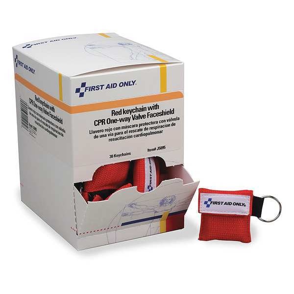 CPR Faceshield, Kit Type CPR, Number of Components 30, 30 People Served, Case Type Box, Case Material Cardboard, Case Color White, Disposable No, Height 6 1/2 in, Length 5 3/4 in, Width 4 1/2 in, Includes Carry Pouch, Chain, Standards ANSI, OSHA, Package Quantity 30