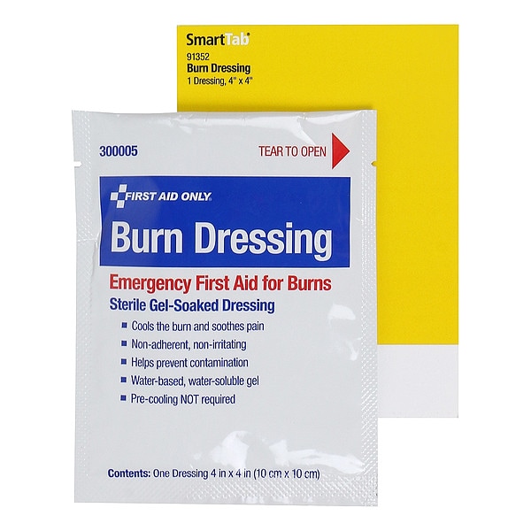 First Aid Kit, Dressing Length 4 in, Dressing Width 4 in, Water Resistance Not Water Resistant, Sterility Sterile, Unitized Unitized, Fastener Included Fastener Not Included, Number of Units Included 1, Package Height 1/4 in, Package Width 4 1/4 in, Package Length 6 in, Compatible Manufacturer Part Number Not Applicable, Compatible Grainger Part Number Not Applicable, Standards Not Applicable, Latex Content Latex Free, Includes Fastener No Fastener, Package Type Bag, Product Type Burn Dressing