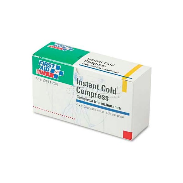 First aid only b-503 instant cold compress, 5 compress/pack, 4" x 5" instant cold compress refill for ansi-compliant first aid kit. Temporarily relieves minor pain and swelling for sprains, aches and sore joints. No pre-chilling required. Width: 5"; depth: 4"; number of pieces: 5. this product arrives to most customers in 2-3 business days.