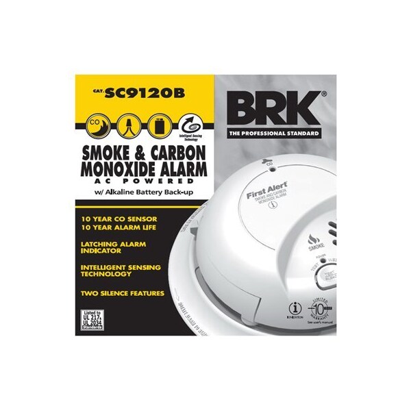 BRK, 120V ACDC Smoke Carbon Monoxide Alarm, Easy InstallationMaintenance, Include A Large Opening In The Mounting Bracket For Easy Access To Wiring, Key Hole Slots In The Mounting Bracket Eliminate The Need To Remove The Electrical Box Screws For Installation, A Battery Pull Tab Keeps The Battery Fresh Until The Home Is Occupied, Battery Installation Removal Can Occur While The Unit Is Mounted To The Ceiling Or Wall Via The Side Load Battery Compartment, 2 Locking Features Are Provided To Prevent Battery Theft Or Theft Of The Unit, Connection To AC Power Is Made With A Quick Connect Wiring Harness, Installation Is Quick, Easy Cost Effective, NOTE Please Check Your Local Building Code Requirements Before Installing This Product To Determine Compliance With Applicable Standards