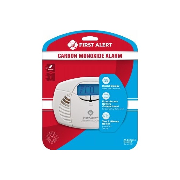 Battery Operated, Carbon Monoxide Alarm, With Digital Display, Easy To Use, Protects Your Family, Detects The Carbon Monoxide You Can't See, Smell Or Taste In The Air, Alarm Uses An Electrochemical Carbon Monoxide Sensor, Easy To Read Back Lit Digital LED Display Communicates A Clear Read Out Of Current Carbon Monoxide Concentrations In Parts Per Million, Battery Back Up Gives You Peace Of Mind During Power Outages, TestSilence Button Both Silences A NonThreatening Alarm Low Battery Warning Allows You To Test The Unit's Functionality, Comes With 1 Carbon Monoxide Alarm, A User's Manual, AA Batteries