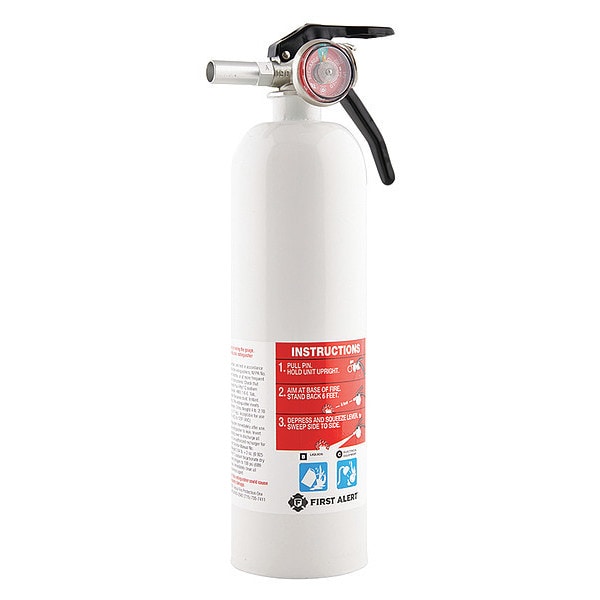 Fire Extinguisher, Charging Rechargeable, Container Type Aerosol Can, Cylinder Color White, Cylinder Diameter 3 3/32 in, Cylinder Height 12 5/16 in, Cylinder Material Steel, Discharge Time 10 sec, Extinguisher Capacity 2 lb, Extinguisher Class ABC, Extinguishing Agent Material Composition Sodium Bicarbonate, Features Easy to Read Pressure Gauge, For Environment House, For Fire Type Electrical Equipment, Gasoline, Oils, Trash/Wood/Paper, Included Mount Bracket Bracket, Includes Mount Bracket