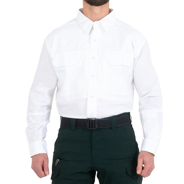 Long Sleeve Shirt, Size L, Color White, Material 35 Percent Cotton, 65 Percent Polyester, Fits Chest Size 42 in to 44 in, Sleeve Length 34 1/2 in to 35 in, Neck Size 16 in to 16 1/2 in, Closure Type Button, Fabric Cotton, Polyester, Pockets 4, Binding (6) Melamine Buttons, Fabric Weight 4.1 oz, Features Lightly Coated DWR Stain Repellent Finish, Full Running Gusseted Construction Under the Arm, Type Long Sleeve Shirt