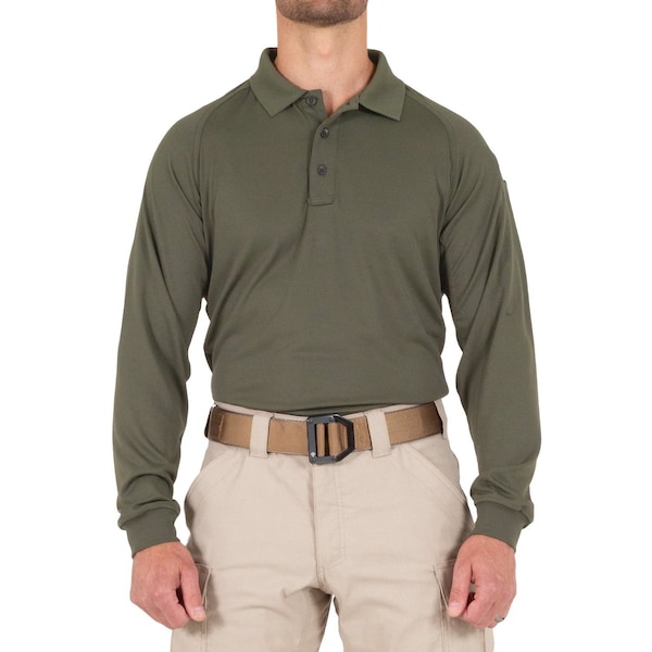 PERFORMANCE POLO LONG SLEEVE, 100% Polyester, Button, 1 Pocket(s), Olive Drab Green, M