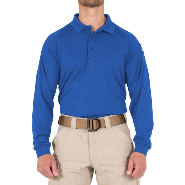 PERFORMANCE POLO LONG SLEEVE, 100% Polyester, Button, 1 Pocket(s), Royal Blue, M