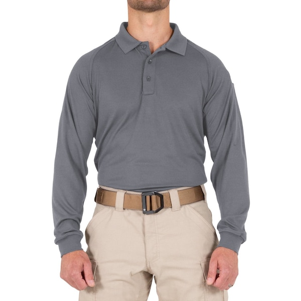 PERFORMANCE POLO LONG SLEEVE, 100% Polyester, Button, 1 Pocket(s), Wolf Gray, L