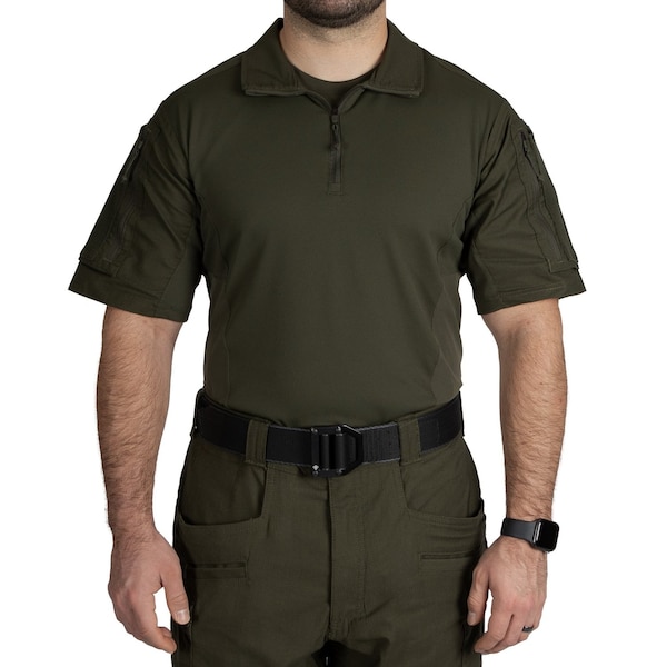 TACTICAL DEFENDER SHIRT SHORT SLEEVE, Zipper, 2 Pocket(s), Olive Drab Green, M